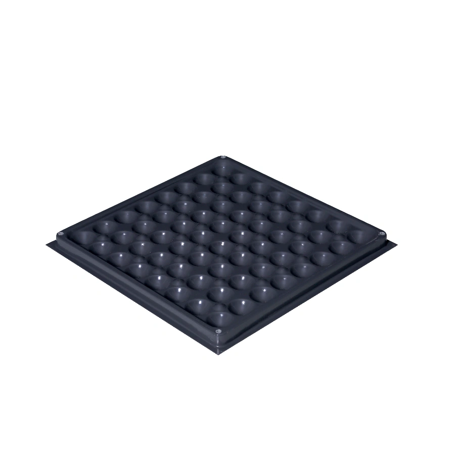 地板底部独特设计的32个凸起,解决了以前平板区域相对薄弱的特点,增强了地板整体的极限承载能力。